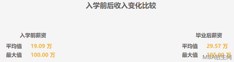 《2017屆浙大MBA學(xué)生概況》,入學(xué)后平均薪資提升了10.48萬,增幅55%,極大值由100萬增加到195萬。