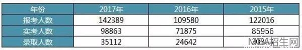 從近三年招錄人數(shù)分析,報考人數(shù)大致以2萬左右遞增,實考人數(shù)緊跟上升。報考熱度可謂是非常高了。從報考趨勢可以看出,報考人數(shù)逐年上漲,MBA等管理類聯(lián)考報考項目熱度不減。