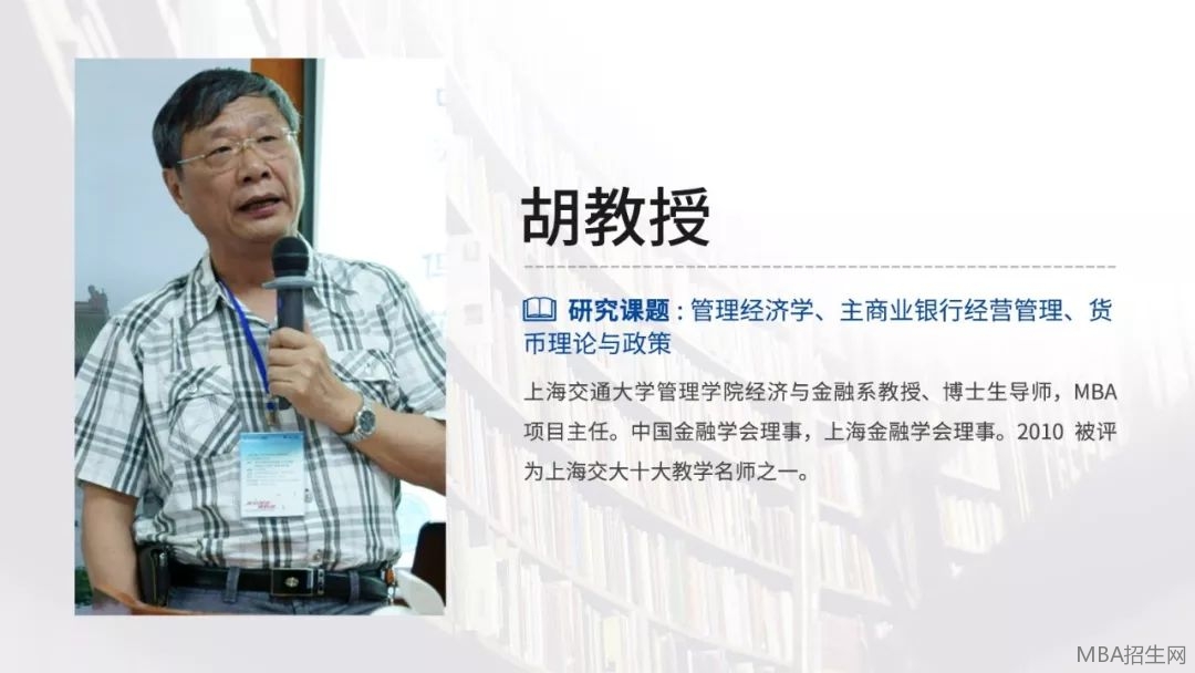 上海交通大學(xué)MBA教授,交通大學(xué)安泰管理學(xué)院經(jīng)濟(jì)與金融系教授、博士生導(dǎo)師、經(jīng)濟(jì)學(xué)博士,1999年胡教授當(dāng)選為上海市金融學(xué)會(huì)第四屆理事會(huì)理事,貨幣理論和貨幣政策研究專業(yè)委員會(huì)副主任,被評為年度最受學(xué)員歡迎的教授之一。主要研究方向:管理經(jīng)濟(jì)學(xué)、貨幣理論與政策等。