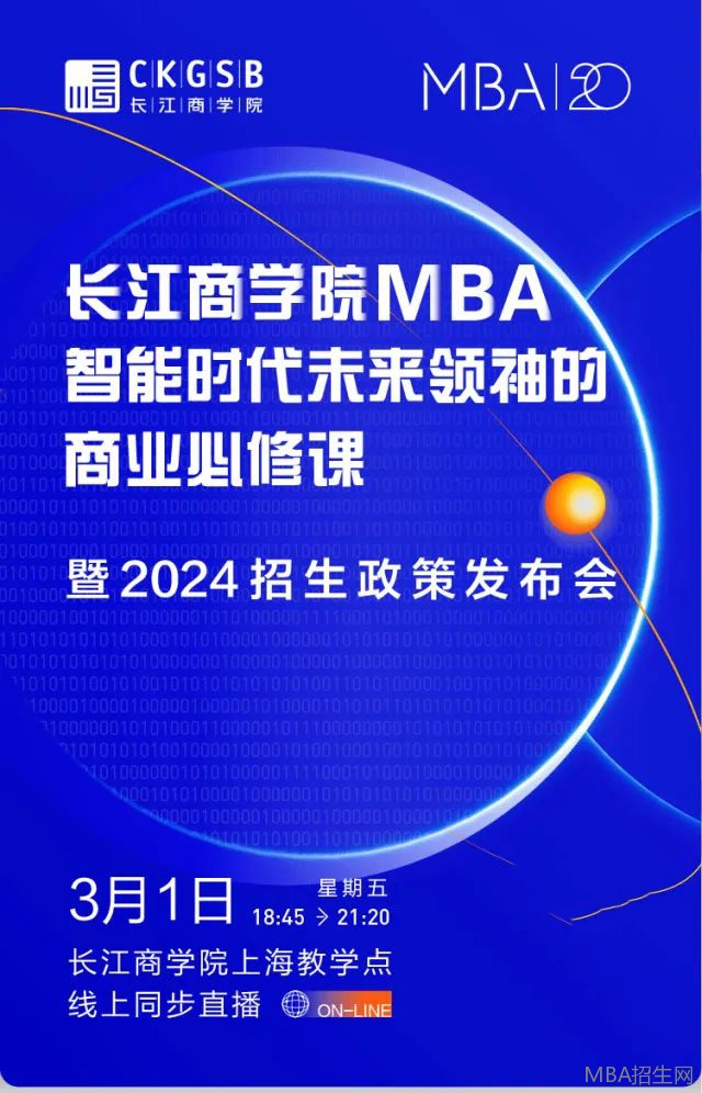 3月1日 重磅發(fā)布!長江商學(xué)院MBA公開課暨2024招生政策發(fā)布會