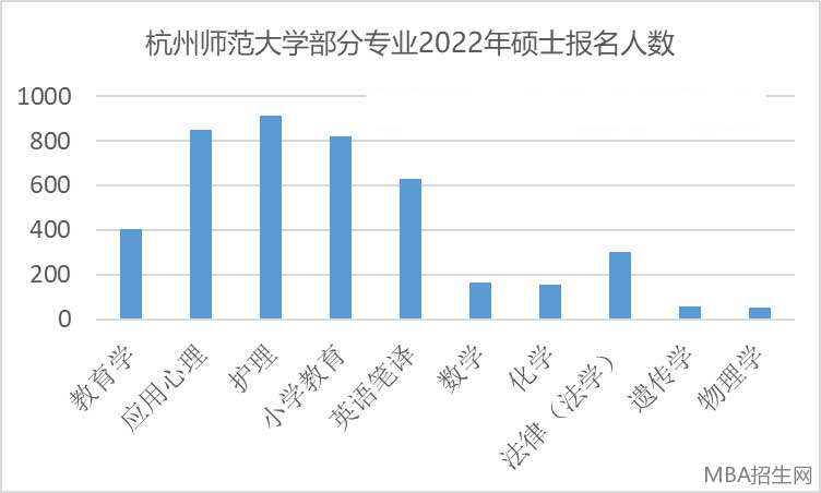 杭州師范大學2022年碩士研究生報考人數各專業差異較大。數據顯示,應用心理專業報考851人,而物理學專業僅有51人報考。